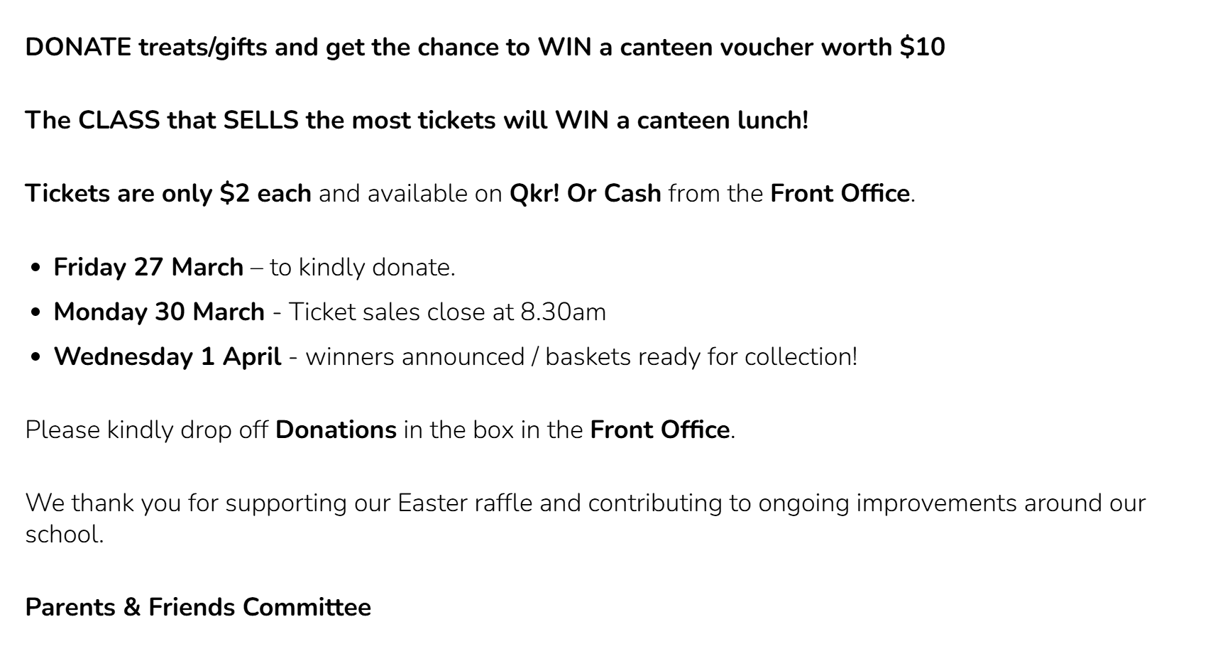 Easter Raffle Donations Needed