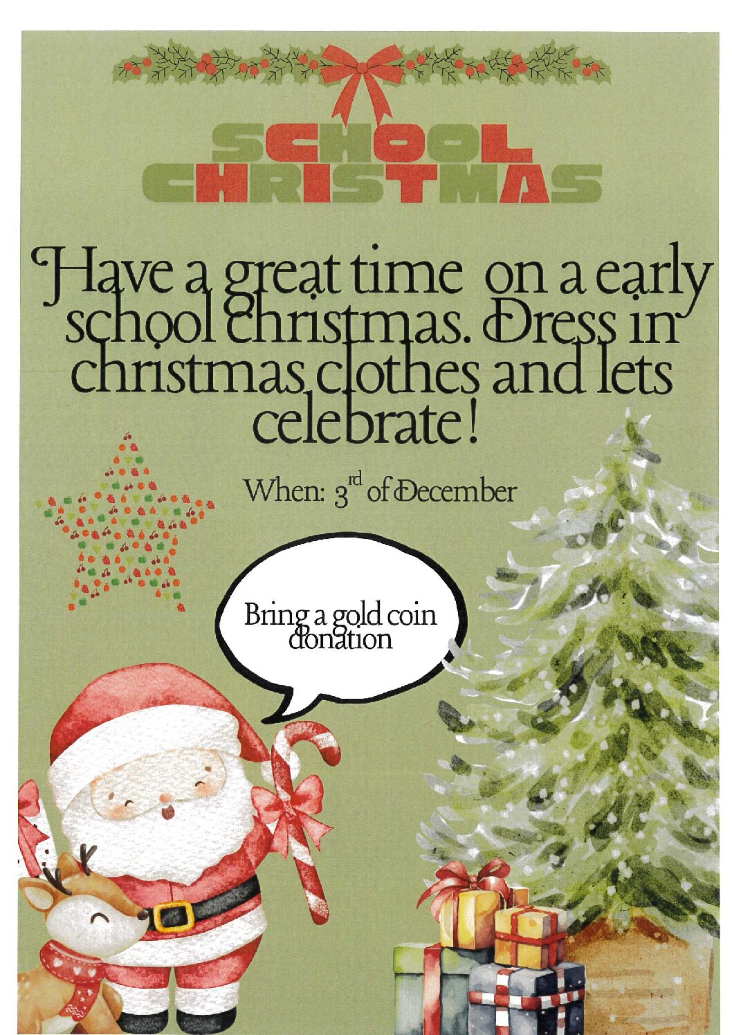 Let’s get in the Festive Spirit and dress in Christmas clothes Wednesday 3rd December, 2025 Gold Coin Donation